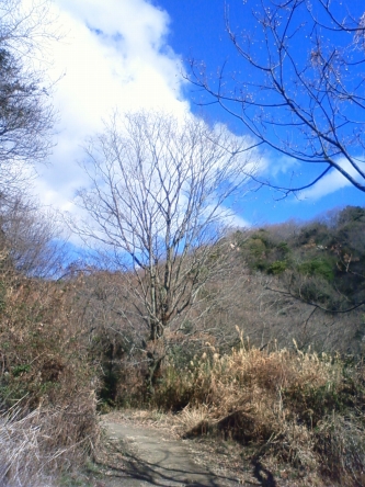 この季節、葉は落ちて花もなく、山に色はない。だけど空は真っ青。そんな中ぼくは落ち葉を踏みしめながら歩く。ザク、ザクッという感触が心地よい。