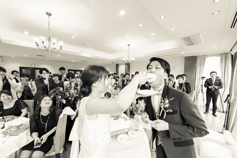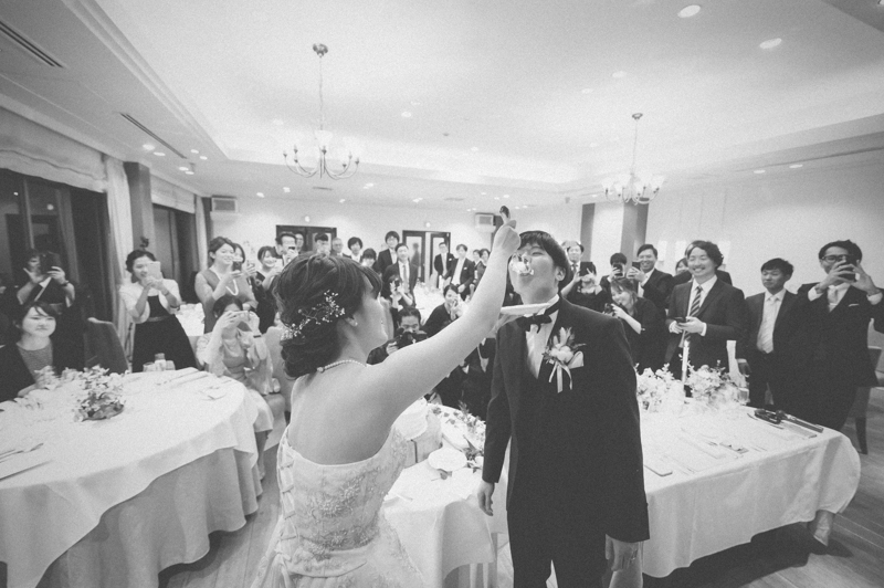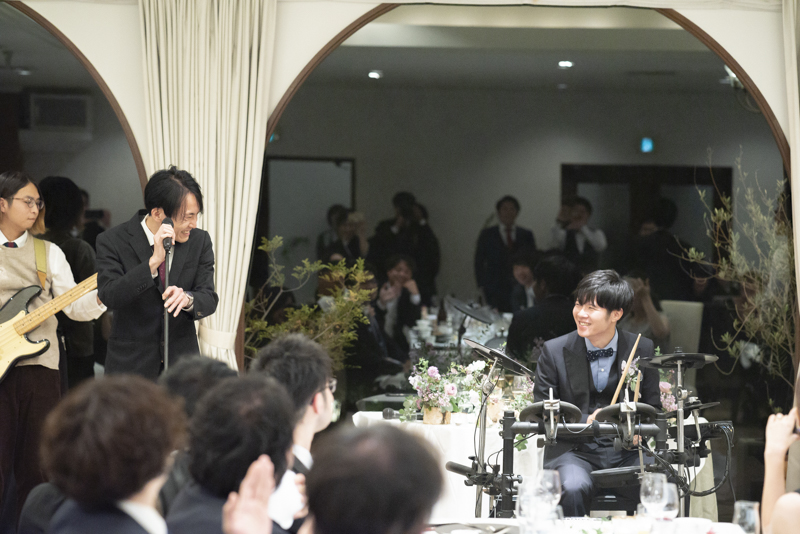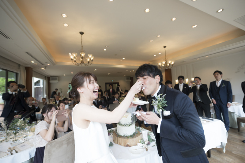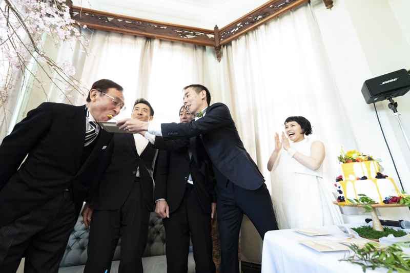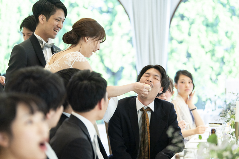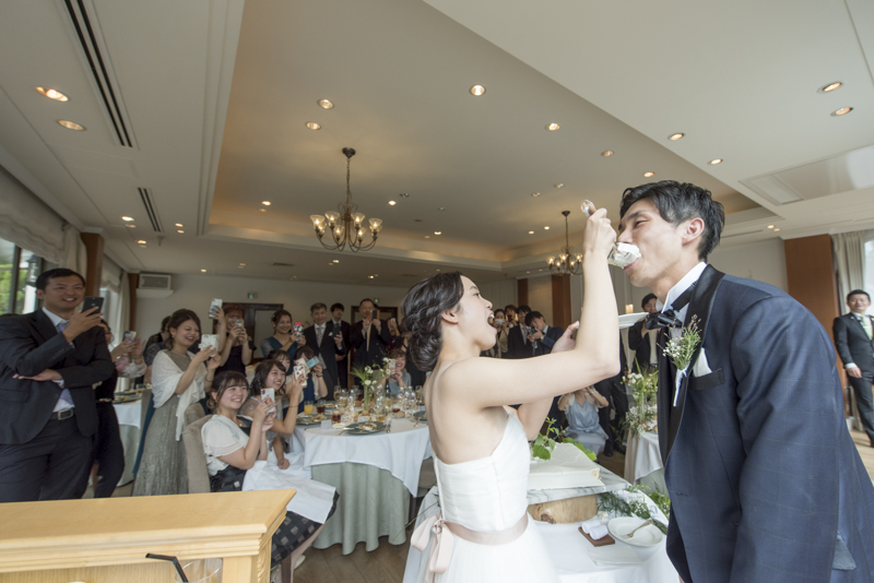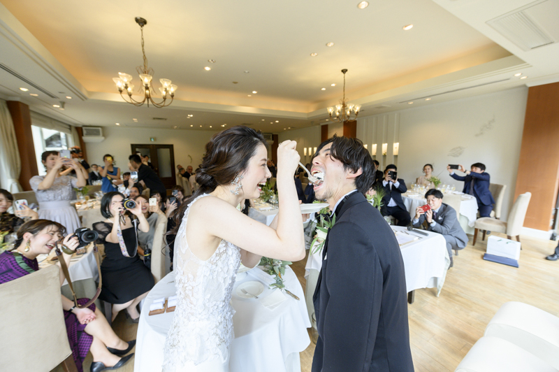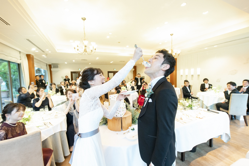 パーティーではドラムをされているご新郎さまのバンド演奏があったり、豪快なファーストバイトがあったりとたくさんの笑いに包まれました。