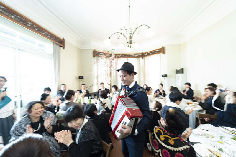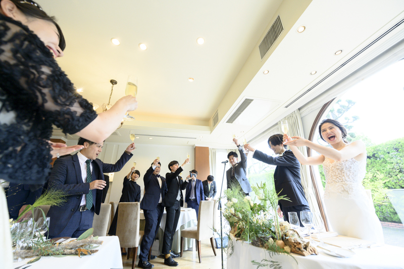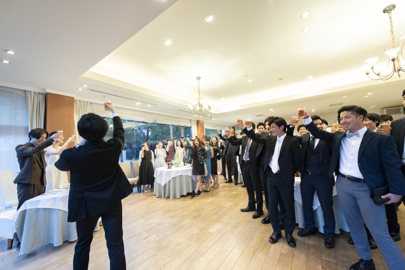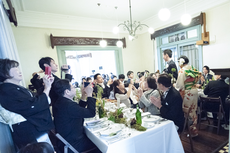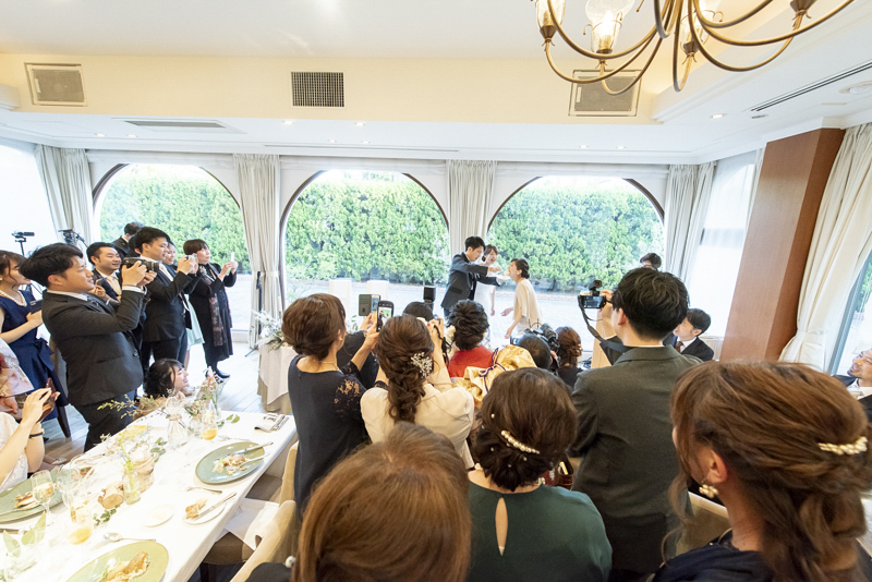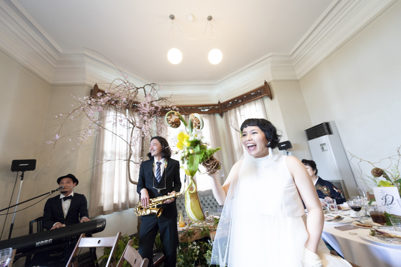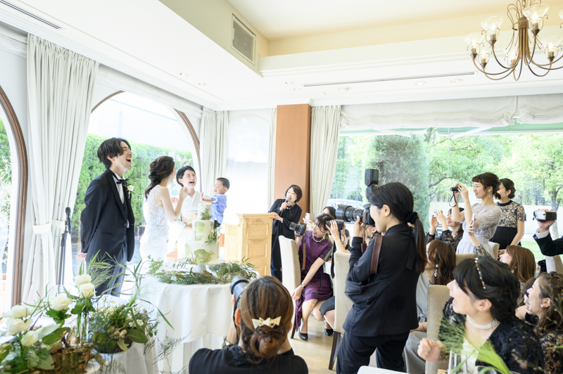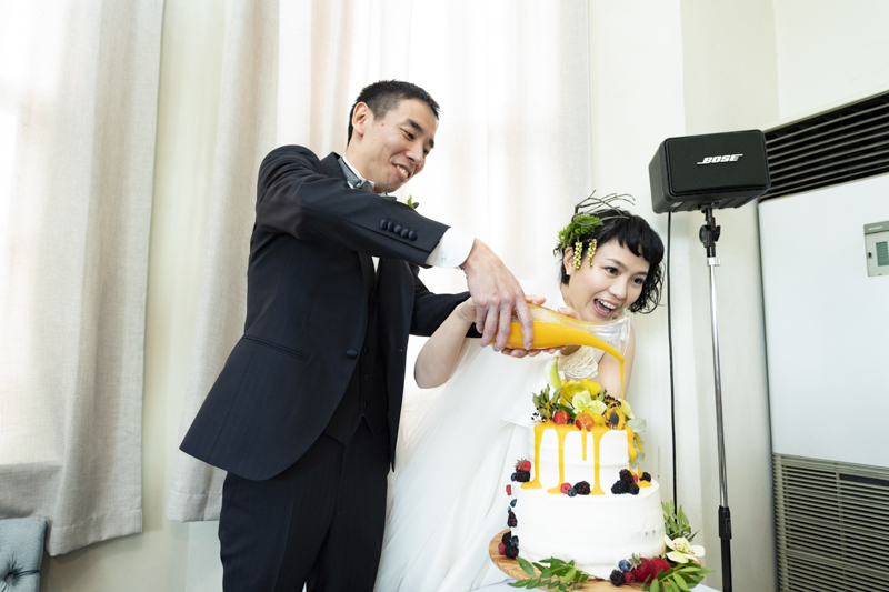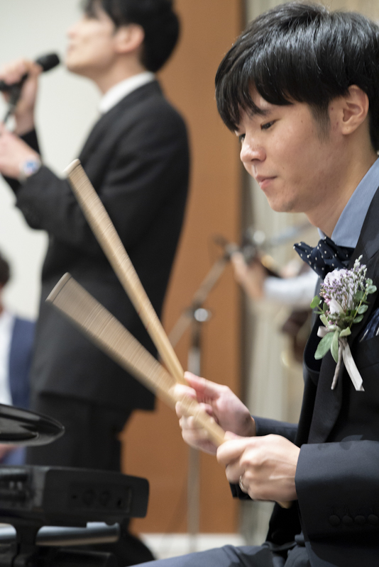 パーティーではドラムをされているご新郎さまのバンド演奏があったり、豪快なファーストバイトがあったりとたくさんの笑いに包まれました。