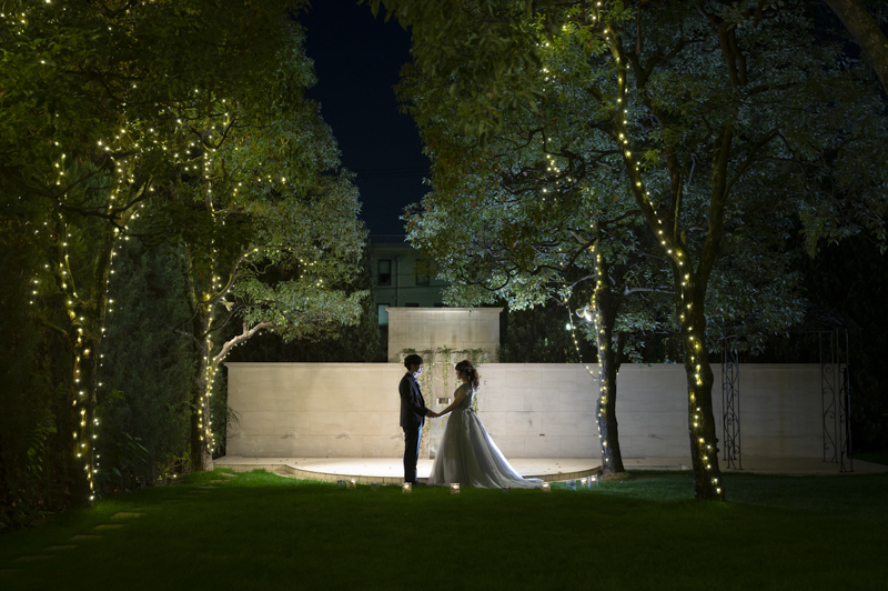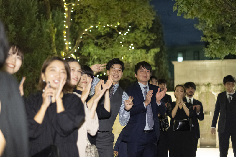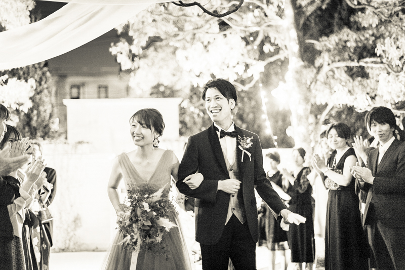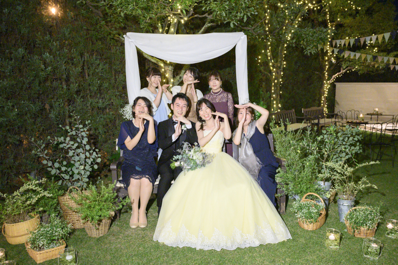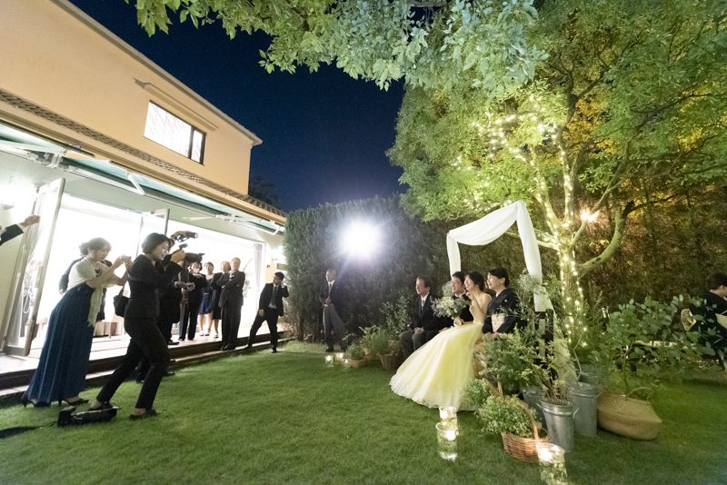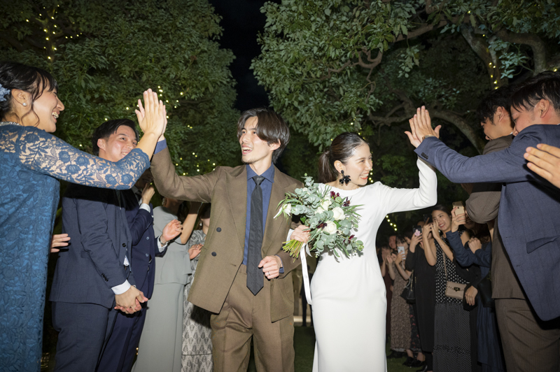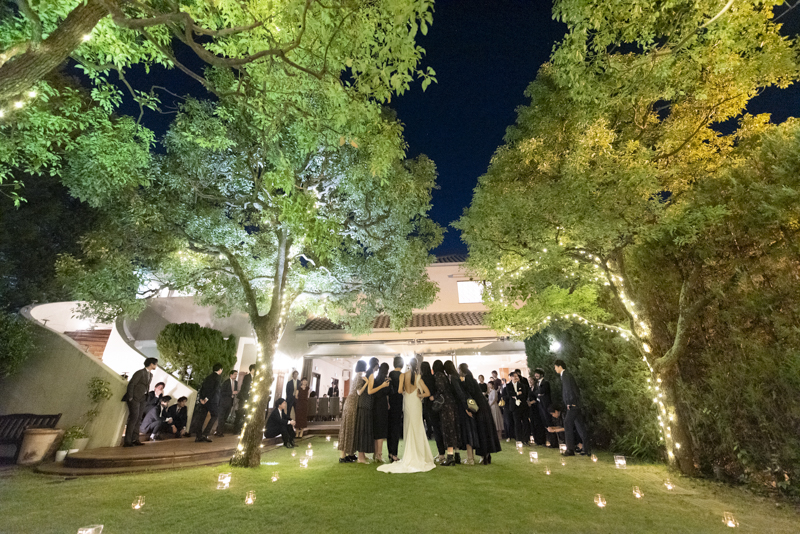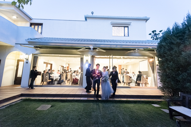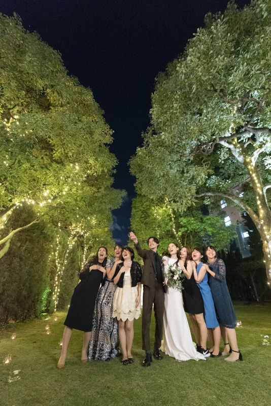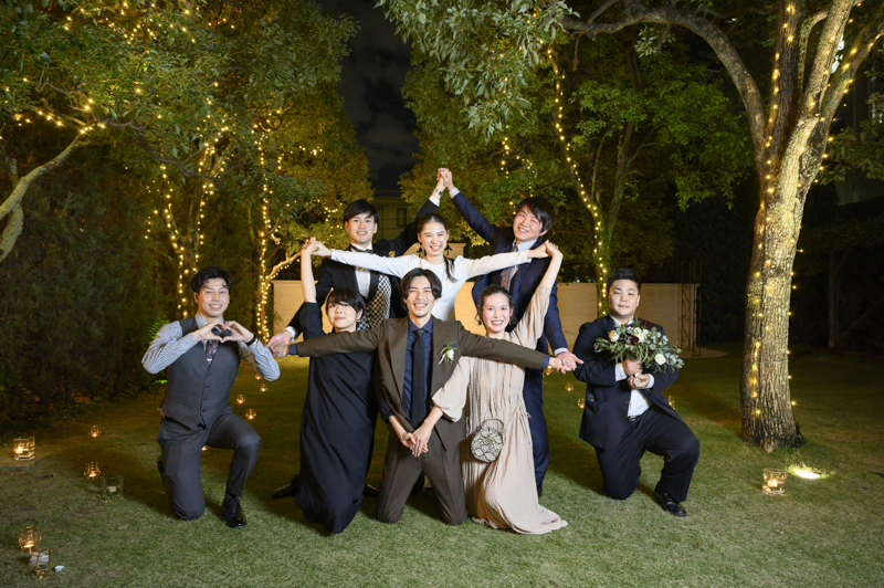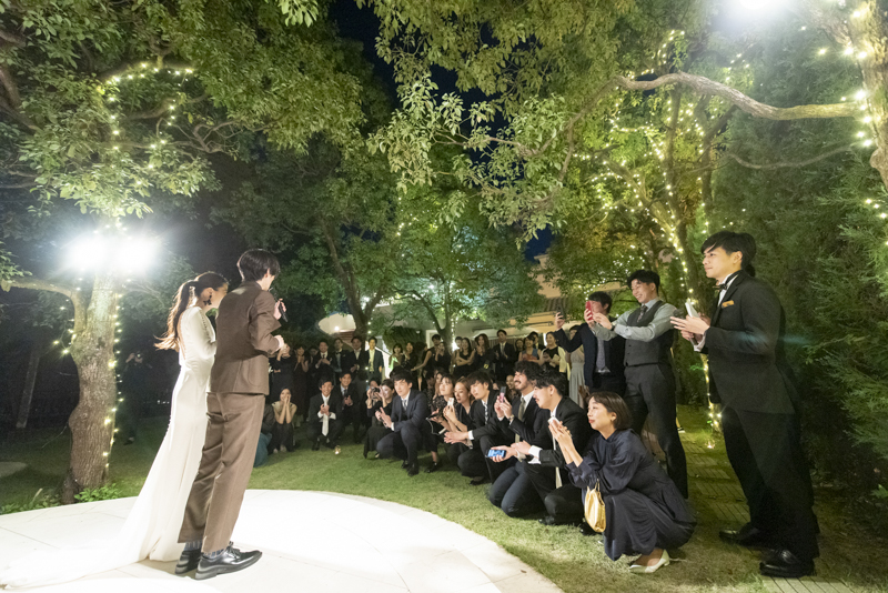 おくたりは二次会までメゾンドタカさんで過ごされました。挙式では大切な皆さまにお手伝いいただきダーズンローズセレモニーを。パーティーでは手を組んで、肩を組んで、ご兄姉でお色直しへ。おふたりも皆さまも、笑いと涙いっぱいのお時間になりました。朝の透き通ったガーデンや、二次会後の雰囲気のがらっと変わった夜のガーデンでも、たくさんお写真を残させていただきました。長い時間おふたりと過ごさせていただき、本当に楽しく、心に残る一日になりました。