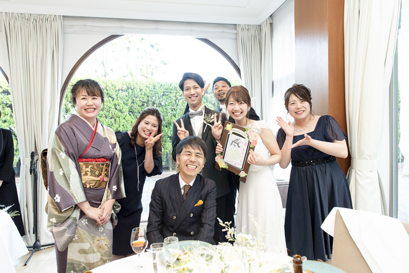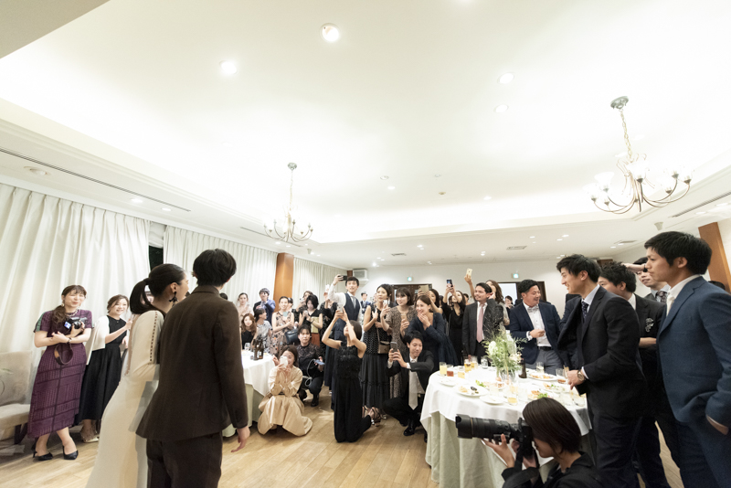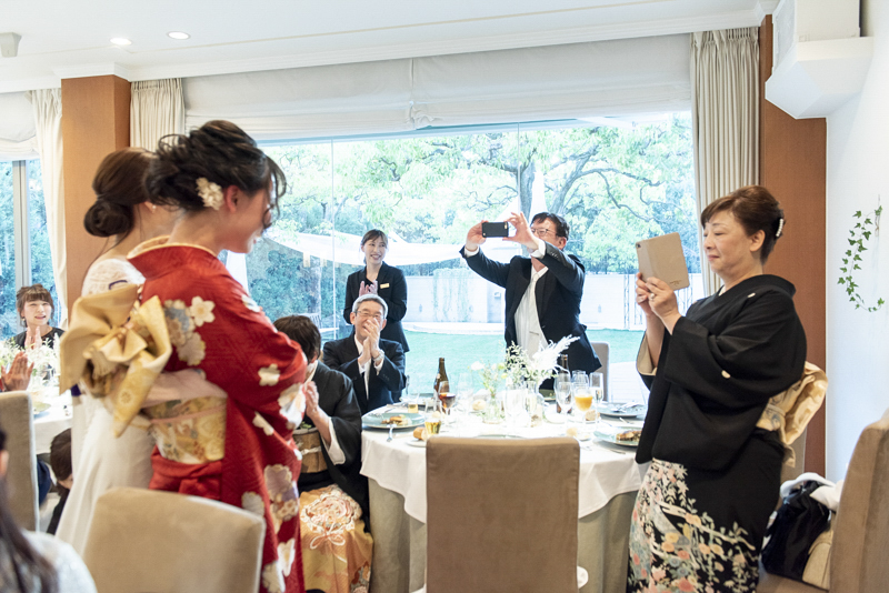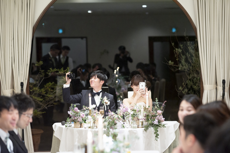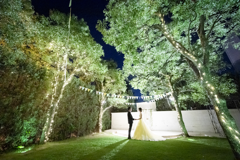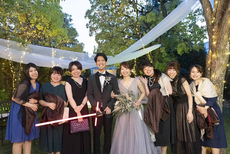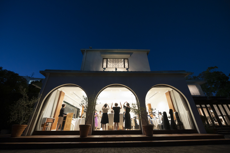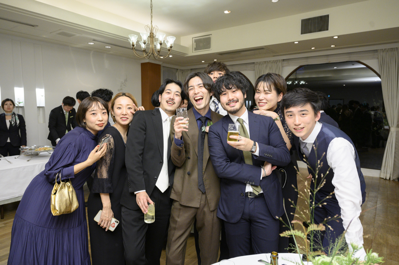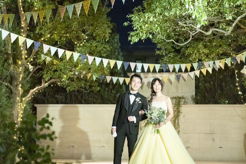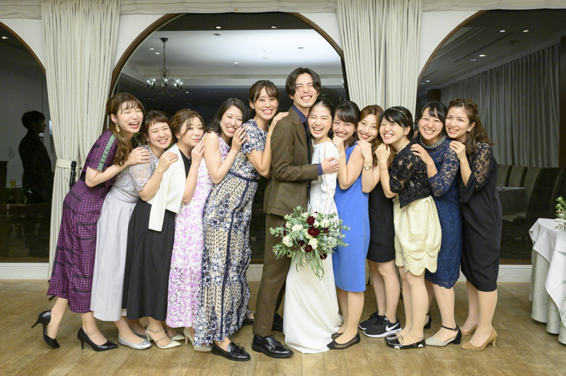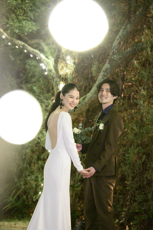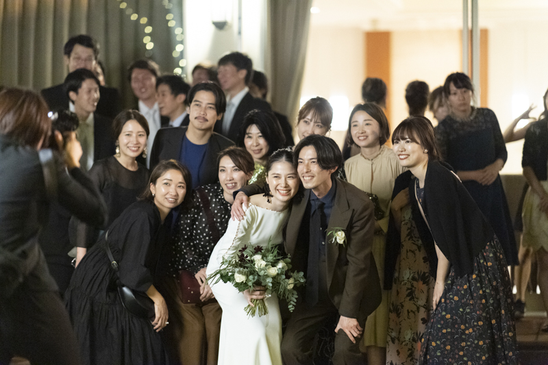 おくたりは二次会までメゾンドタカさんで過ごされました。挙式では大切な皆さまにお手伝いいただきダーズンローズセレモニーを。パーティーでは手を組んで、肩を組んで、ご兄姉でお色直しへ。おふたりも皆さまも、笑いと涙いっぱいのお時間になりました。朝の透き通ったガーデンや、二次会後の雰囲気のがらっと変わった夜のガーデンでも、たくさんお写真を残させていただきました。長い時間おふたりと過ごさせていただき、本当に楽しく、心に残る一日になりました。