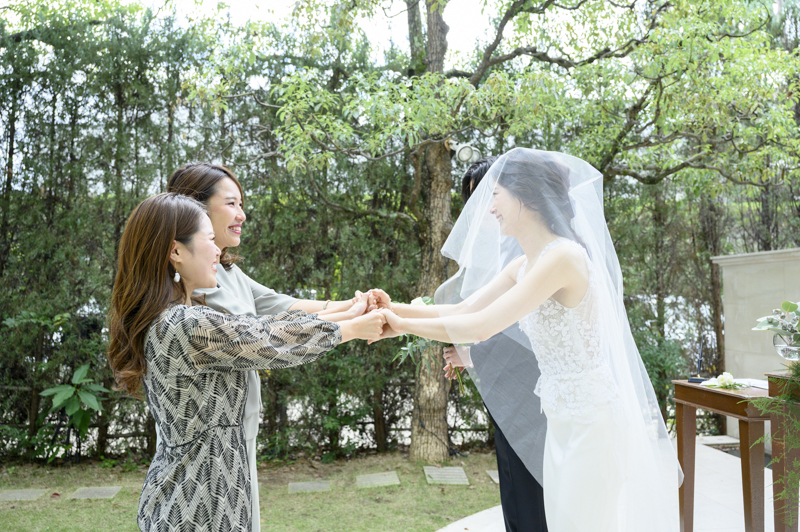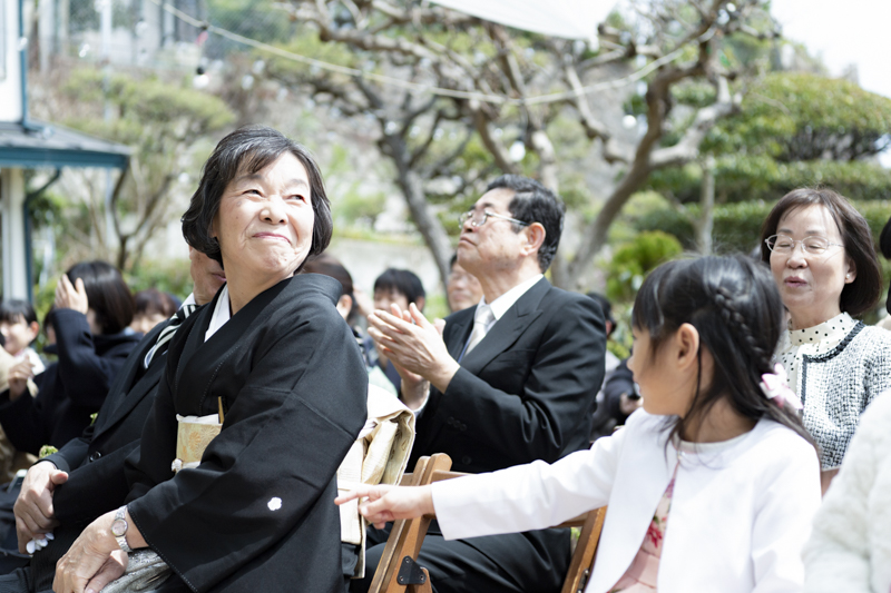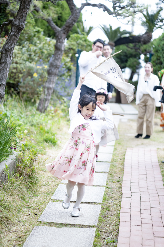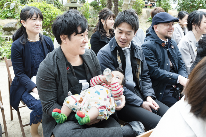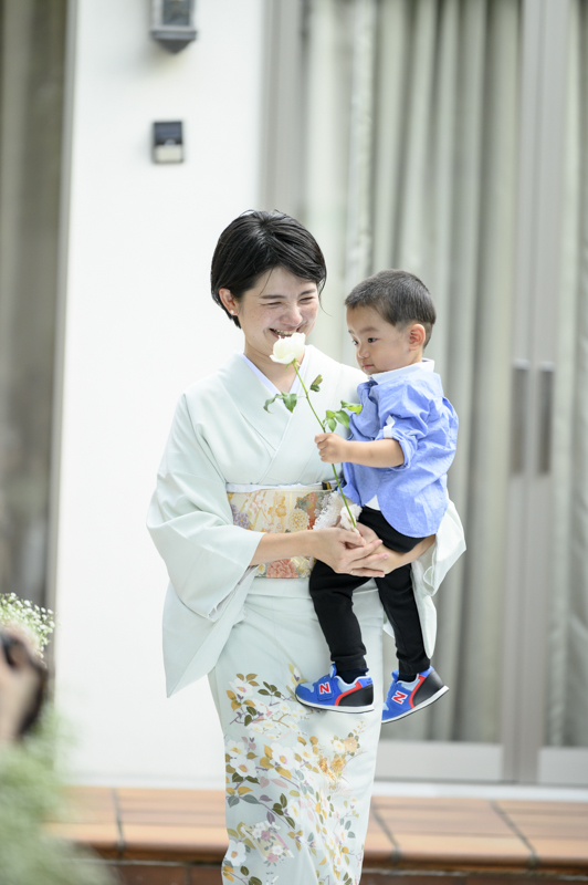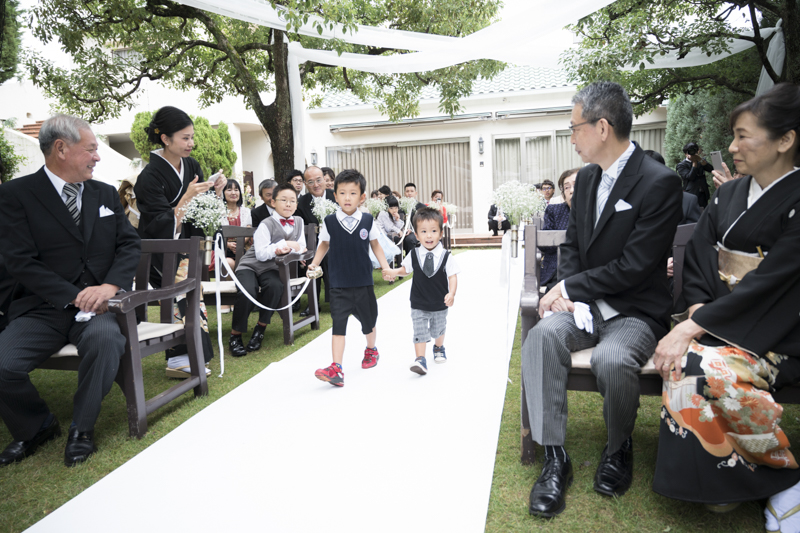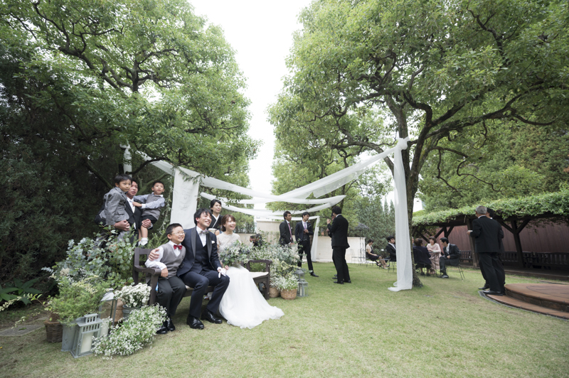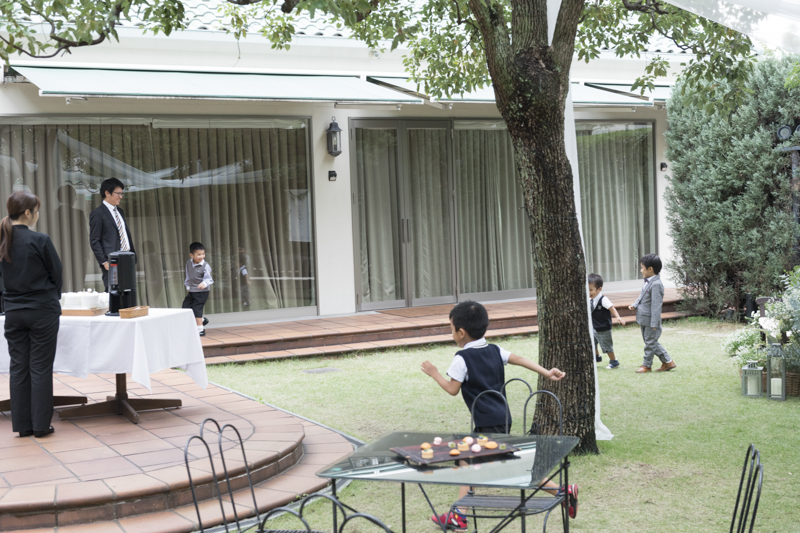 おふたりの緊張や、お越しくださったゲストの方々にも、たくさんの笑顔を運んでくれたお子さまたちはこの日大活躍でした。ご友人とお話中、お庭で遊ぶお子さま。おふたりには見えない瞬間も、後から見返していただけるよう、たくさんのお写真を残すことができました。幸せが詰まった、とても素敵な一日でした。