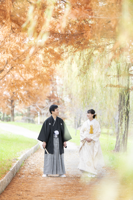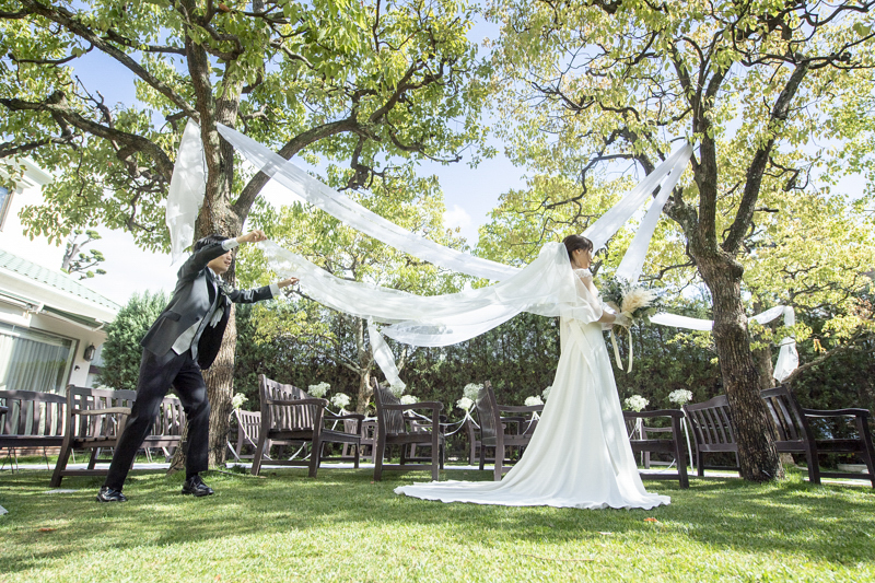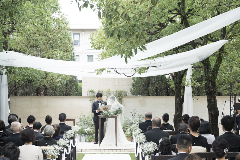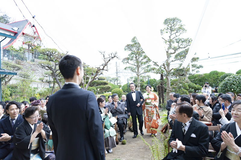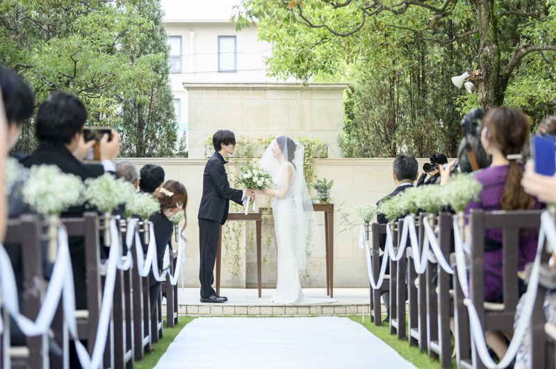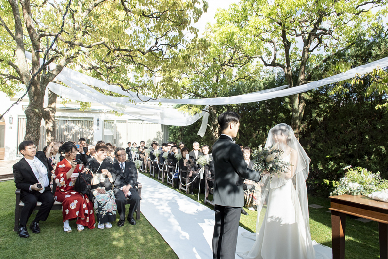 晴れた秋の日の午後に執り行われたメゾンドタカ芦屋さんでの結婚式。