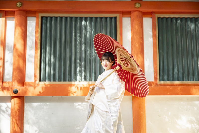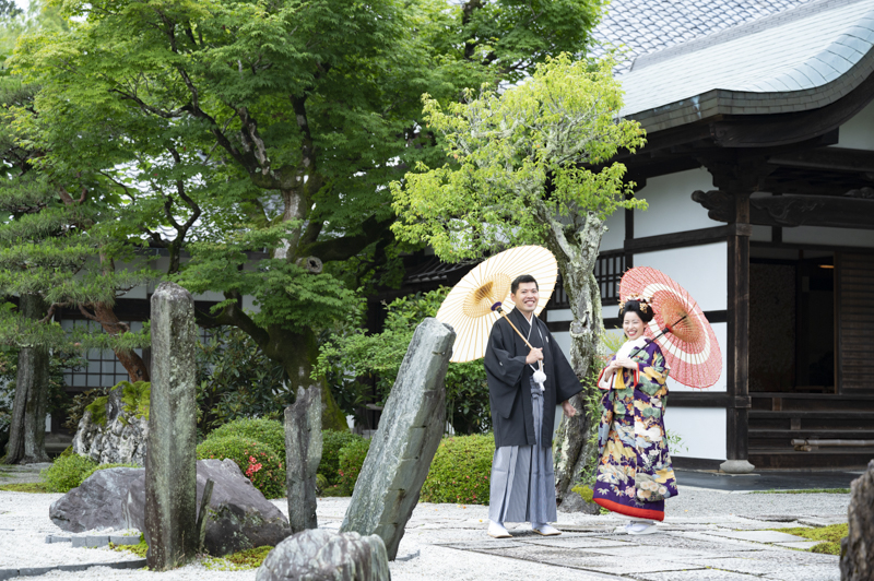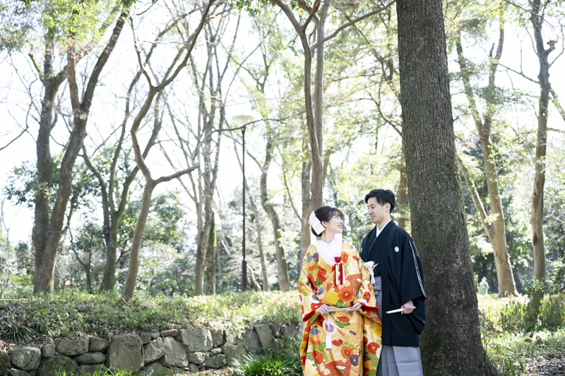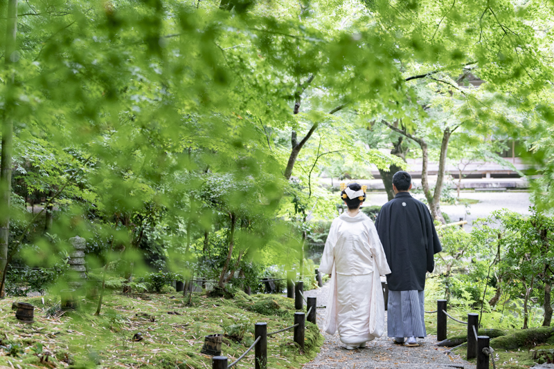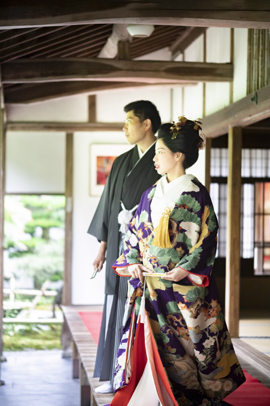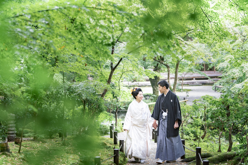 白無垢、色打掛どちらもとってもお似合いでした。お寺の中での撮影や庭園を散歩しながら、とっても素敵な表情を見せてくださいました。