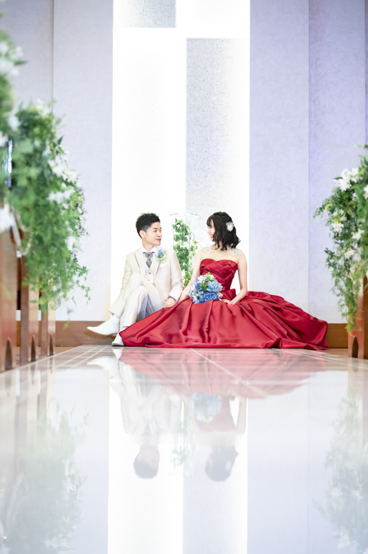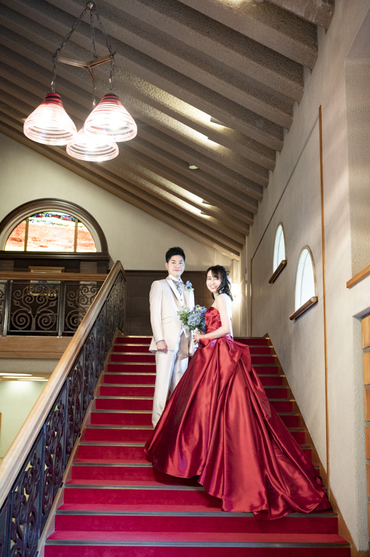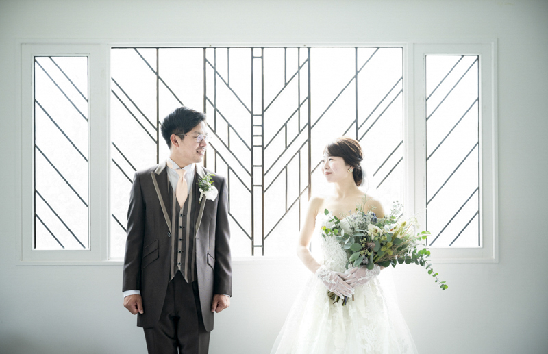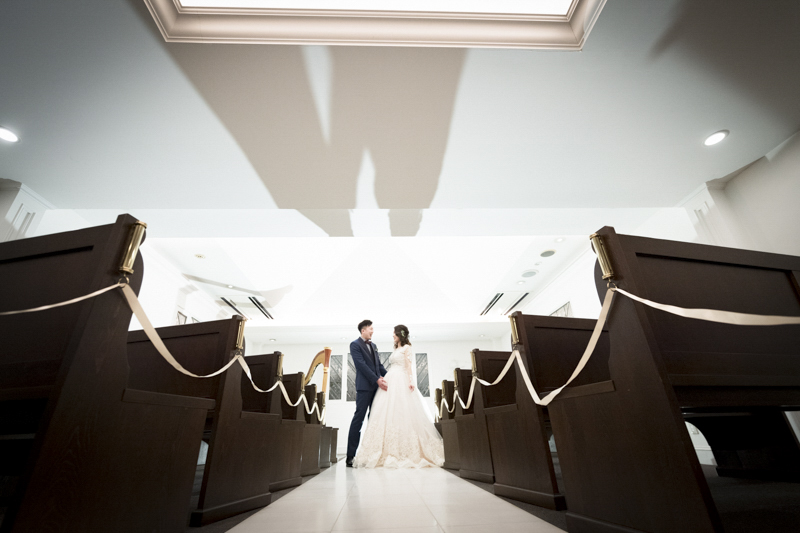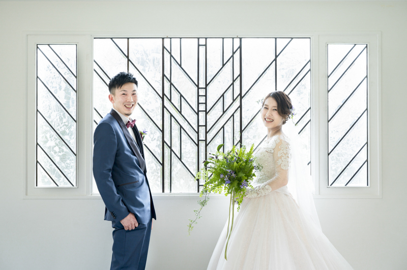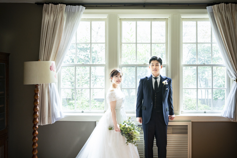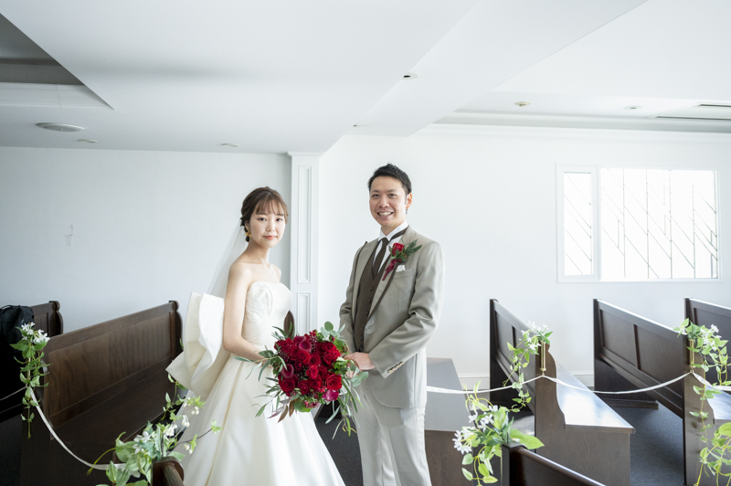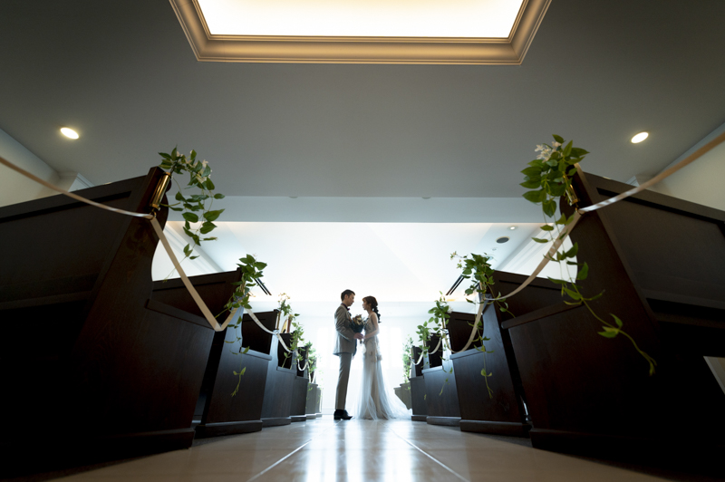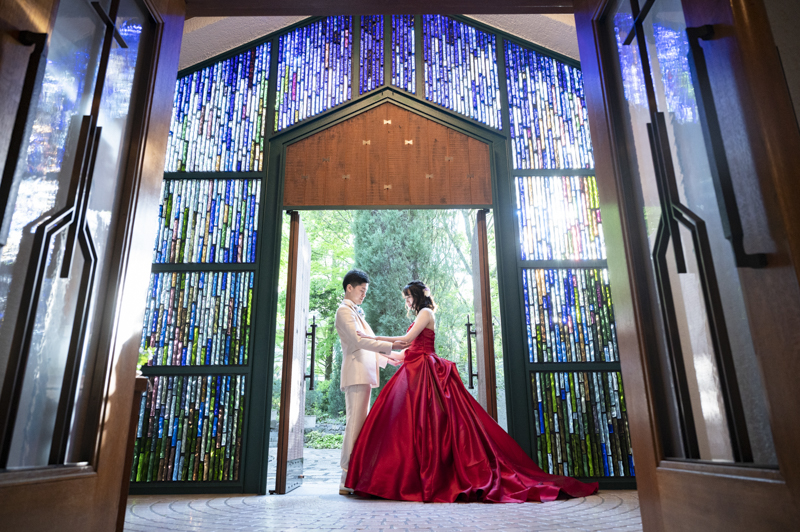 ステンドグラスから日差しがたっぷり入る特別室は明るく、どの場所で撮影してもおふたりの姿が映えます。