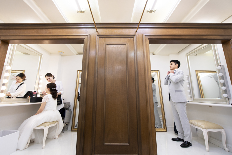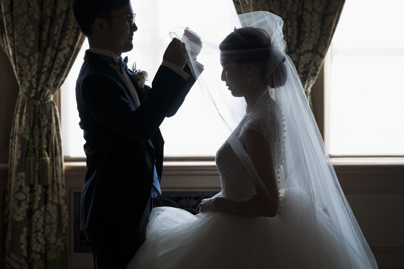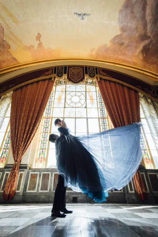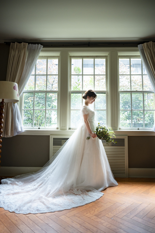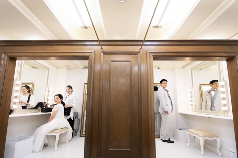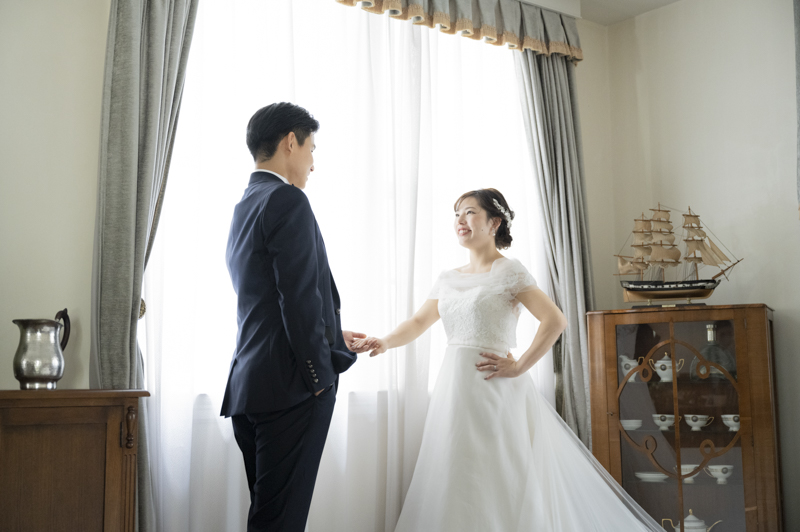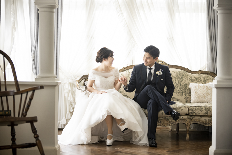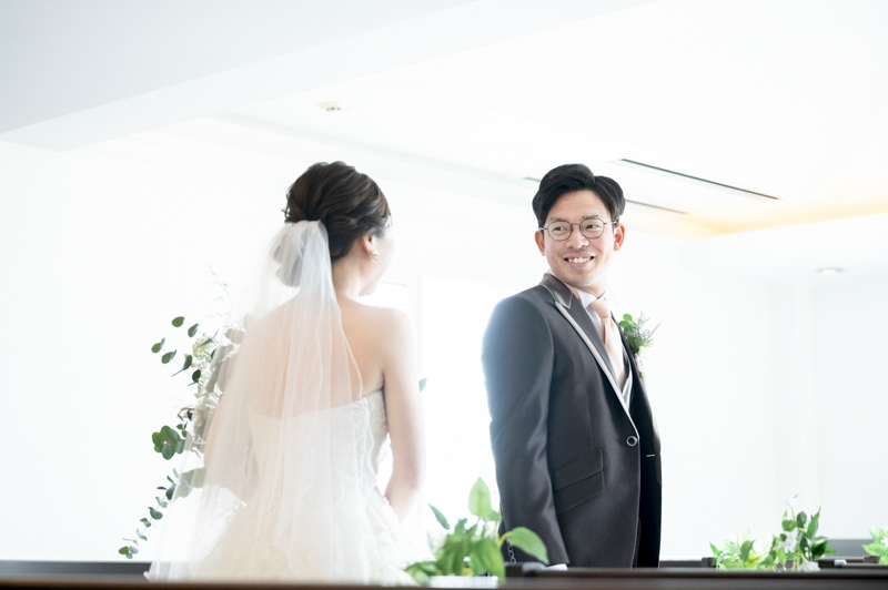 ステンドグラスから日差しがたっぷり入る特別室は明るく、どの場所で撮影してもおふたりの姿が映えます。