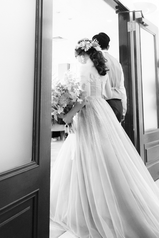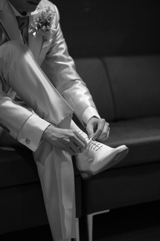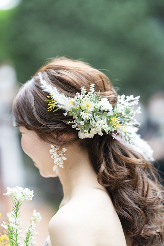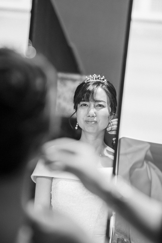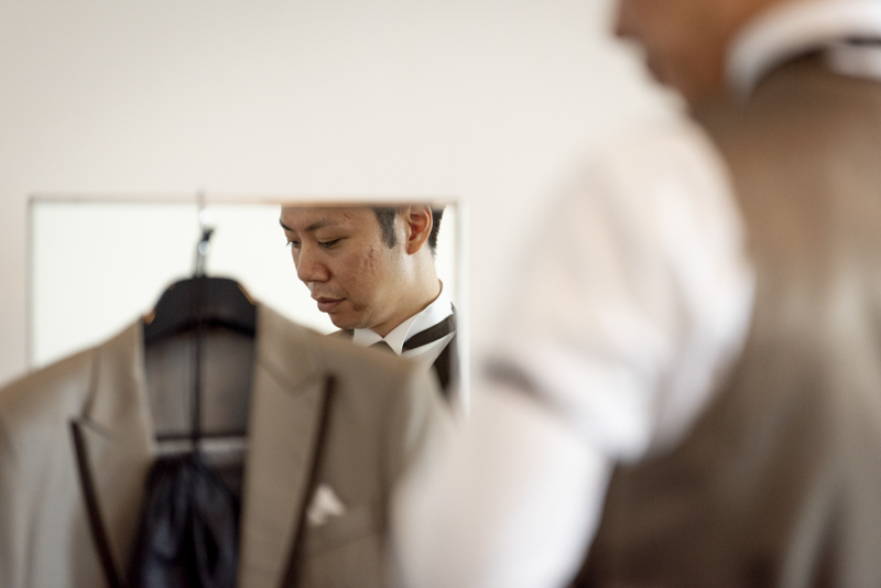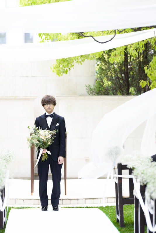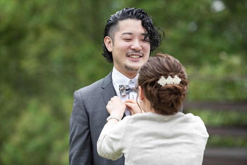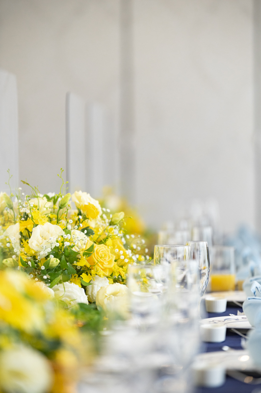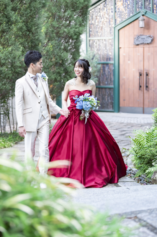 センス抜群のおふたり。ドレス、タキシード姿はもちろんのこと、ご用意されたアイテム類やパーティー会場の装花まで完璧でした。ノゾミさんの真っ白なドレス姿はとってもお綺麗でした。お支度完成後の、ファーストミートでは、感極まったヒロミチさんは思わず涙が溢れ出ていました。そんな素敵な瞬間を撮影させていただき、私たちまで幸せいっぱいのお時間を過ごさせていただきました。祝福に包まれたバルーンリリースは天気よし、おふたり、ゲストの皆さまの表情よしの最高の瞬間でした!
