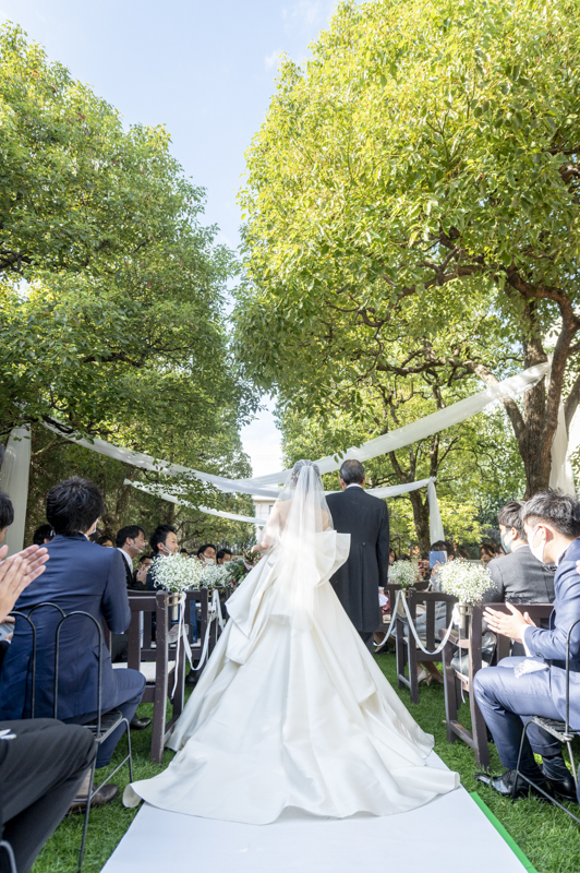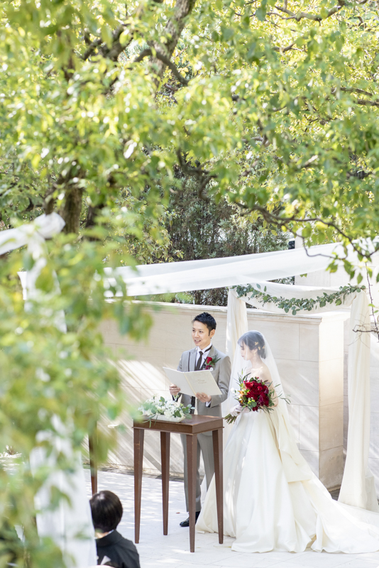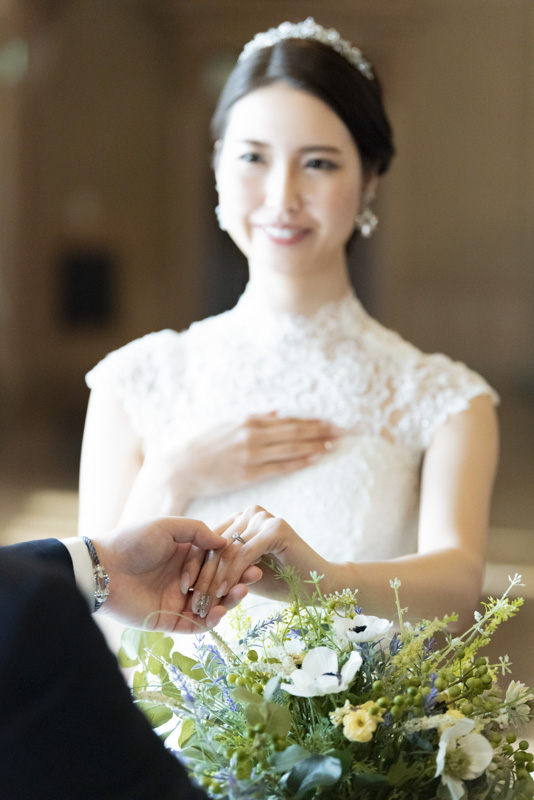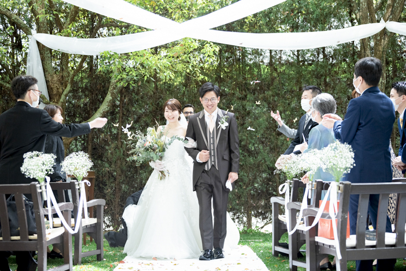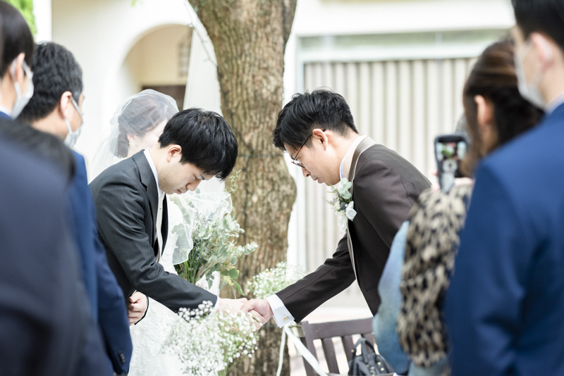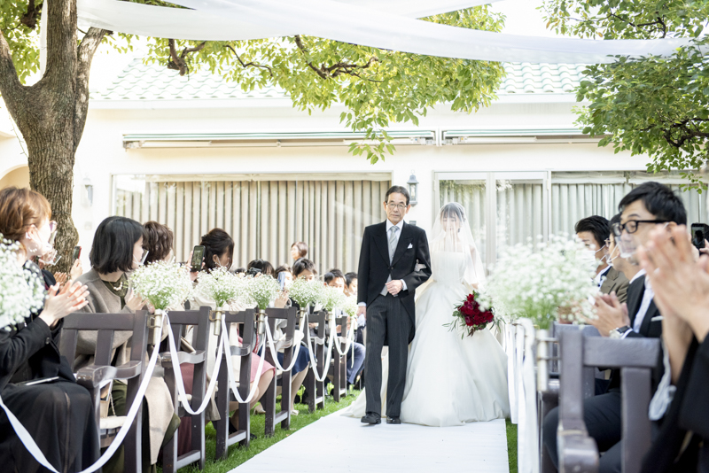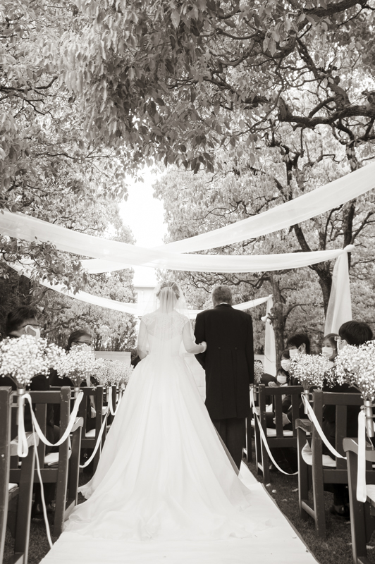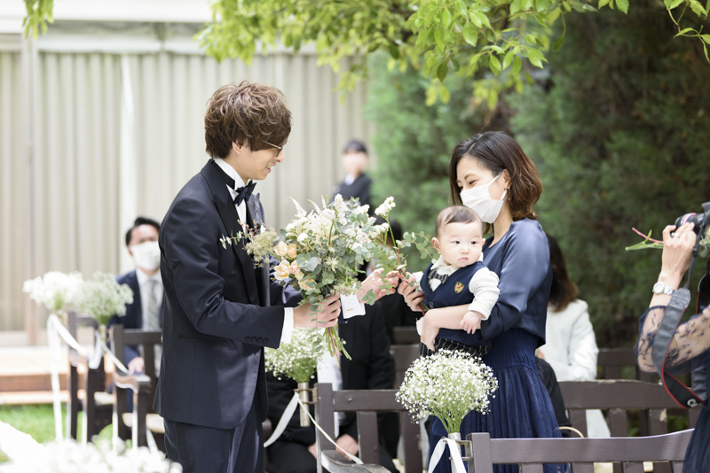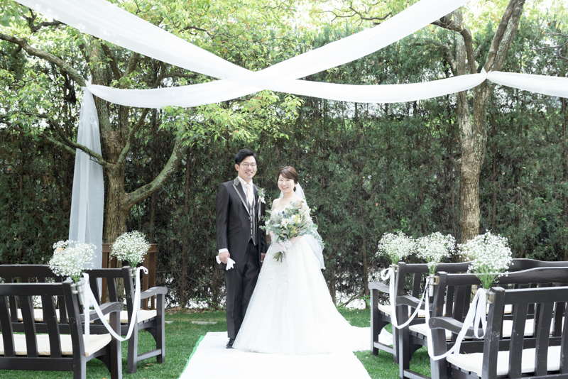 朝まで降っていた雨は挙式が始まる頃にはすっかり降りやんで、ご家族に見守られたアットホームな結婚式になりました。