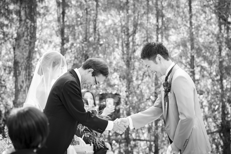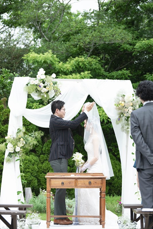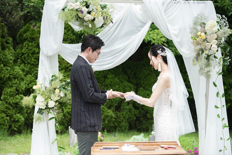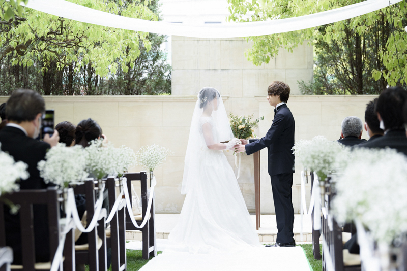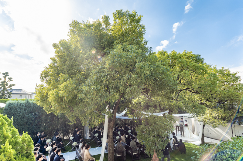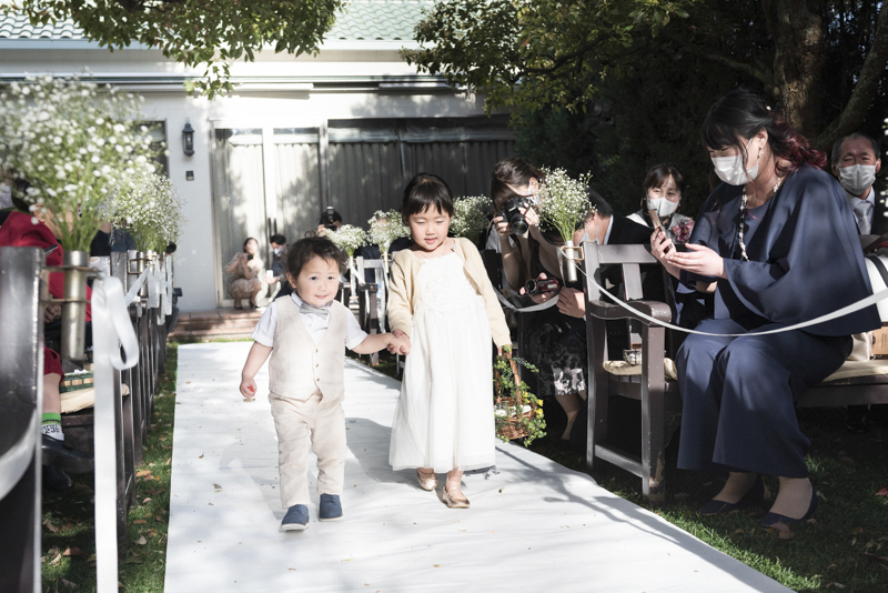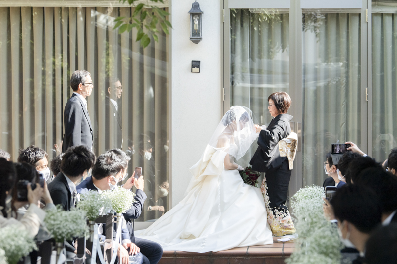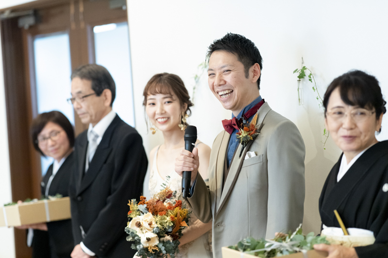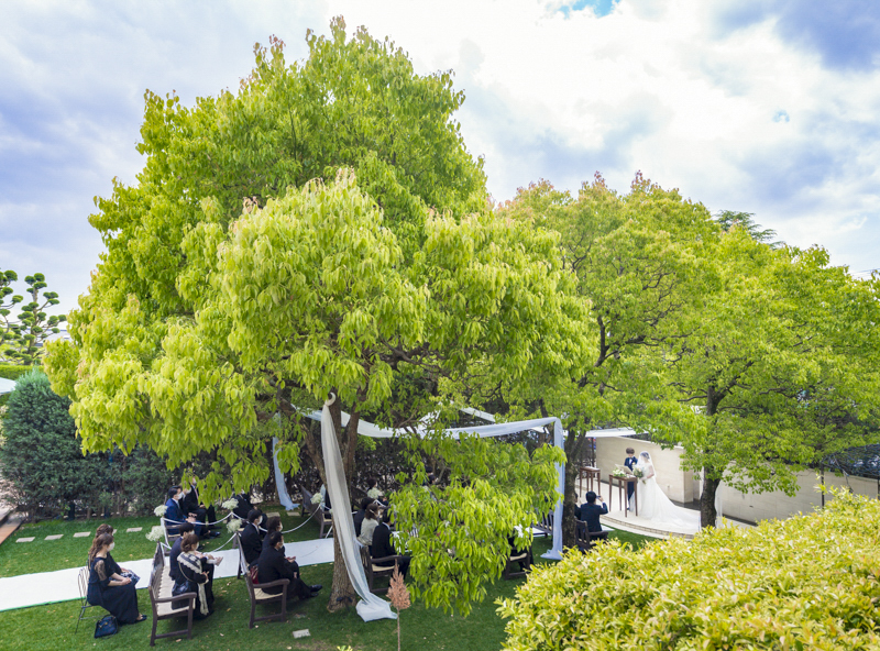 朝まで降っていた雨は挙式が始まる頃にはすっかり降りやんで、ご家族に見守られたアットホームな結婚式になりました。