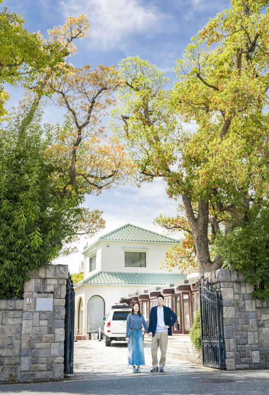 そして北野に足を運んで「あばたもえくぼ寫眞館」で引き続き撮影。ここはヴォーリズ設計のぬくもりある邸宅です。雨が降ったり止んだりのお天気模様でしたが、おふたりやスタッフの皆様のおかげでたくさん笑った一日になりました。