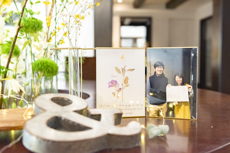 ご結婚式の数日後、わざわざお礼のお手紙をくださいました。「今の楽しみはレザーのアルバムが届くことです!」そんなアルバムの1ページ目は、メゾンドタカの外観。たくさん悩んで決めていただいたジャーナルアルバムはカッコイイ一冊になりました。ご友人やご家族で見返して、あの日を思い出していただけると嬉しいです。