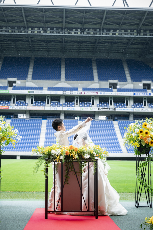 「パナソニックスタジアム吹田」で行われたご親族だけでのご結婚式。
