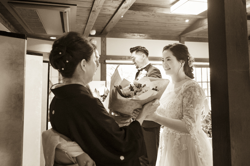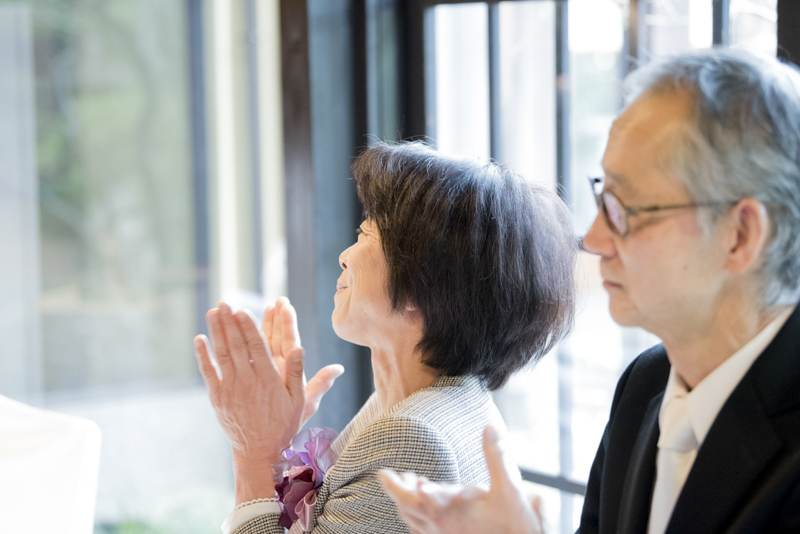 式後や会食中、おふたりのところにみなさまが集まってくだり、たくさんお話をされていました。来てくださったみなさまと肩肘張らず、リラックスして過ごされたおふたり。たくさんの祝福に包まれた、とても心温まる一日でした。