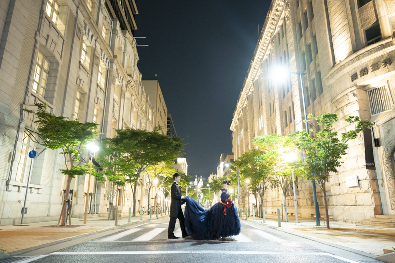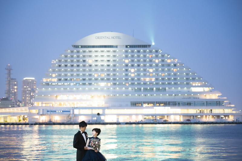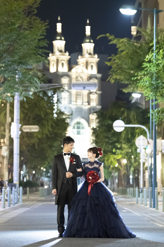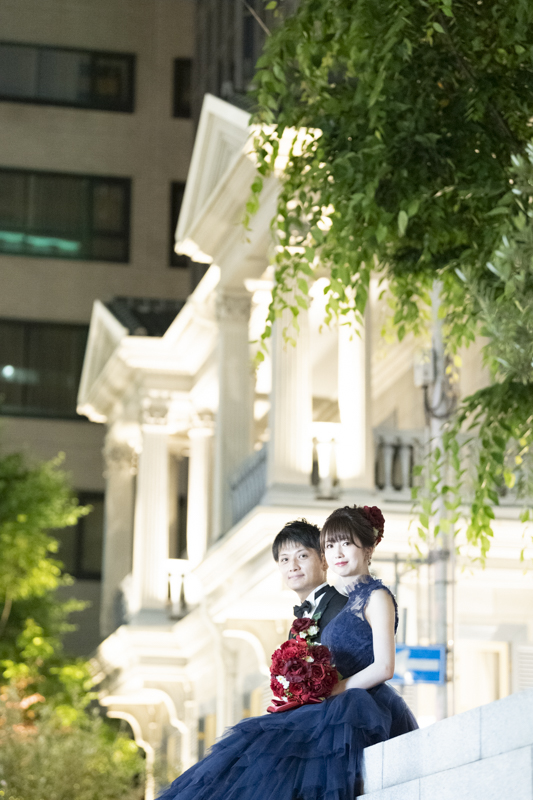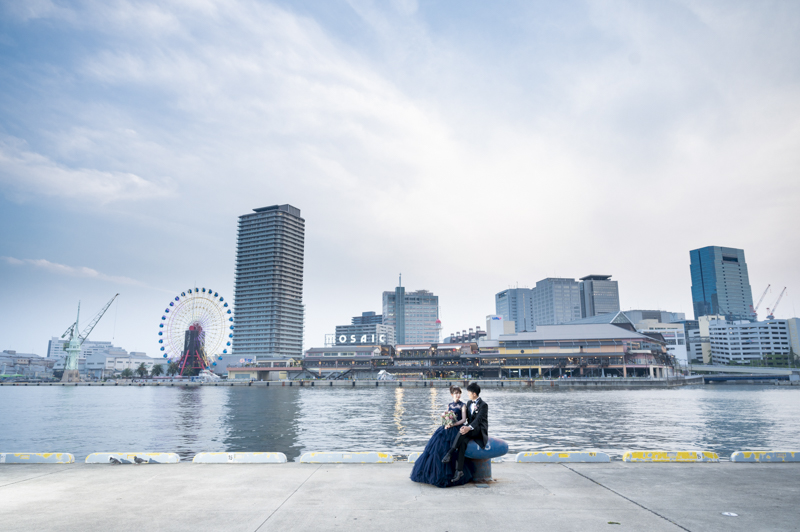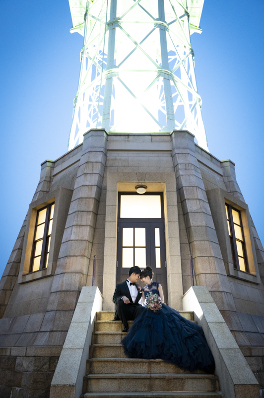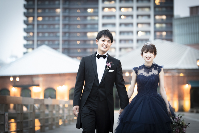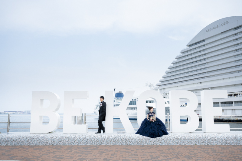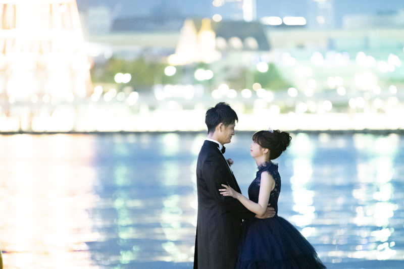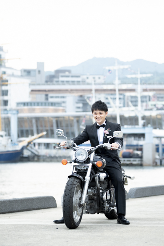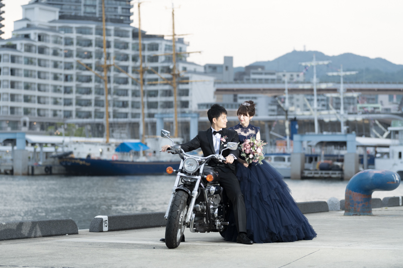 夕方から日が落ちるまで撮影させていただきました。シックな雰囲気や楽しい雰囲気、どんなシチュエーションもお似合いのおふたり。たくさんの手作りアイテムをご用意してくださっていたり、神戸の街並みをバックにご自慢のバイクと撮影をしました。この日は、ストロベリームーンという、とても綺麗な満月だったのも印象的でした。
